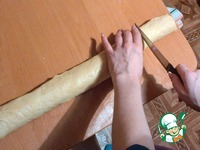 Скатайте тесто в рулет и разрежьте на 12 равных частей. |