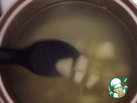 Добавляем в кастрюлю с картошкой грибы с овощами, даем закипеть |