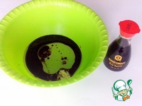 Для маринада соединить и перемешать соевый соус Kikkoman, растительное масло и пропущенный через пресс чеснок. |