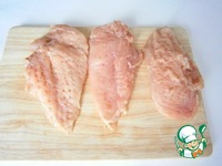 Филе (желательно взять крупное) помыть, обсушить бумажным полотенцем, слегка отбить молотком. |