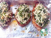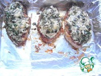 Обжарить филе до образования золотистой корочки. Форму для запекания выстелить фольгой и выложить обжаренное филе. |