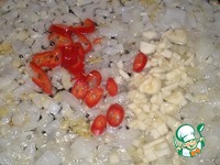 Разогрейте оливковое масло и поджарьте лук на слабом огне, пока он не станет мягким. Добавьте рубленый чеснок, кумин и мелко порезанный перец. Оставьте на огне на 3 минуты. |