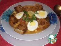Сверху положите разрезанные вдоль вареные яйца, дольку лимона (также можно выдавить лимонный сок в тарелку) и листья свежего кориандра. Приятного аппетита! |