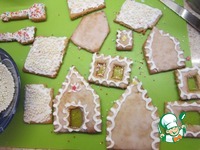 Собирая домик, для упора можно использовать разные баночки или кружки. Стыки снеток залить глазурью и дать подсохнуть. |