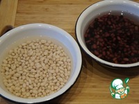 Накануне оба вида фасоли промыть и залить холодной водой на 10-12 часов. |