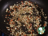 Всыпать в сковороду чеснок, зиру, орегано и чили и готовить 30 секунд, |