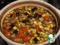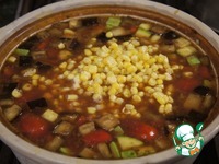 Добавить кукурузу. Приправить солью и перцем, плотно закрыть крышкой или фольгой и поставить в разогретую до 180*С духовку на 50-60 минут. |