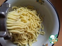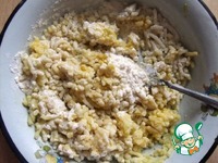 Дрожжи развести в подслащенном молоке, смешать со столовой ложкой муки и оставить для подъема, после чего смешать с подготовленной картофельной массой. |