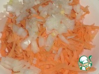 Лук репчатый мелко нарезать. Сырую морковь натереть на крупной терке. Смешиваем лук и морковь с 1 ст. л. сметаны. |