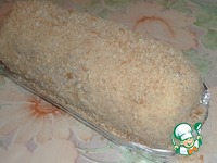 Рулет сворачиваем. Обсыпаем измельченным крекером. Из фольги делаем формочку под рулет. |
