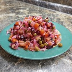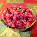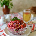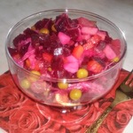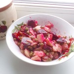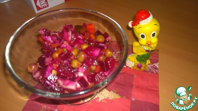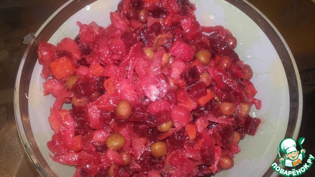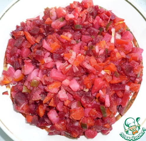 Морковь, свеклу и картофель нарезать мелкими кубиками.