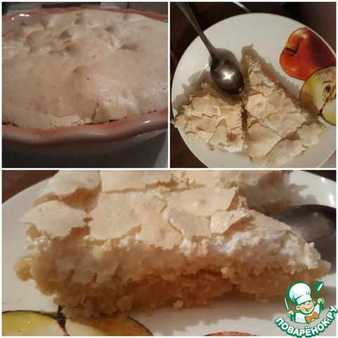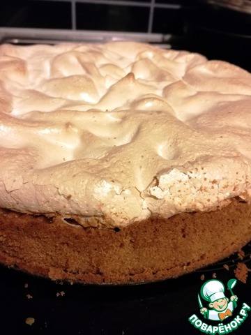Готовую шарлотку вынуть из духовки, покрыть меренгой и снова поставить в д/ш в режим с вентилятором и готовить до легкого загара меренги;
