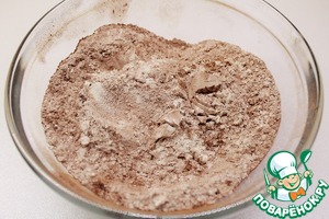 Просеять муку, какао-порошок, разрыхлитель, соль и отложите в сторону.