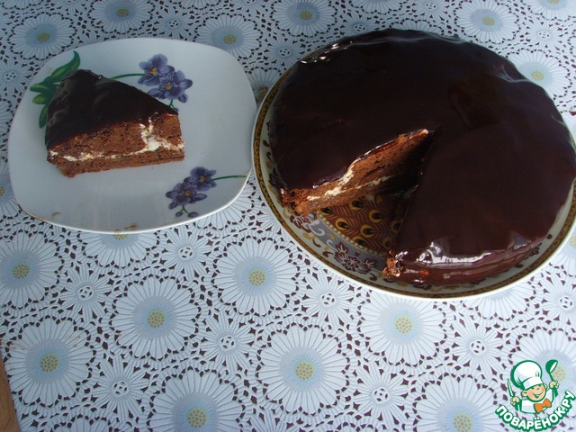 Заливаем готовый торт глазурью и отправляем в холодильник, чтобы глазурь застыла.