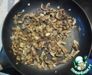Обжарить грибы и лук до сухости. Остудить.