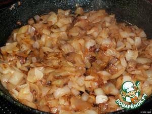 Обжарить мелко порезанный лук.