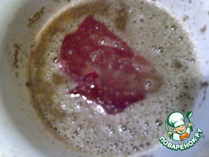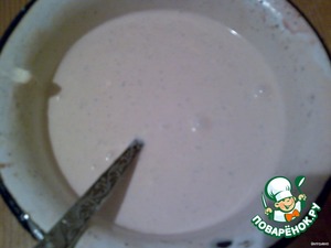 В оставшиеся взбитые яйца кладем сметану и кетчуп, взбиваем.