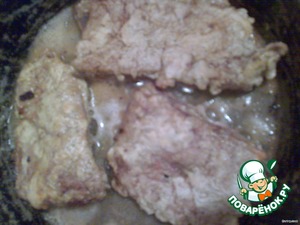 Печень порезать крупными пластинами толщиной около 1 см., слегка отбить.