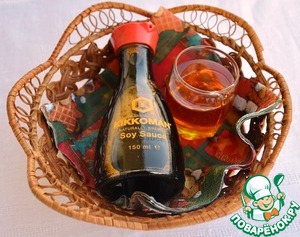 Добавляем к маринаду соевый соус и мед. Все аккуратно перемешиваем!