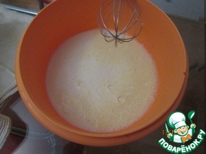 В большой миске взбиваем яйца, молоко, добавляем сахар, соль.