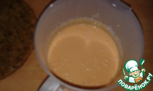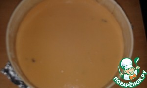 Первую часть коржа положить в форму, вылить крем и поставить в холодильник