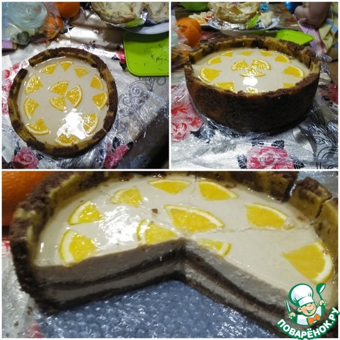 Нежный, творожно-желейный тортик с шоколадно-апельсиновым вкусом. Замечательно подходит для детей, которые отказываются есть творог. Рецепт взят из книги "Чудеса выпечки". Очень хочу подарить его замечательному, милому, человечку - Виолете (Violl). С наступающим праздником, дорогая!