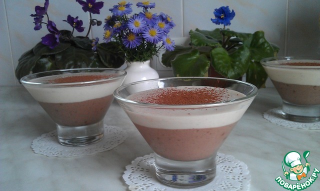 В креманки выложить шоколадное желе и убрать в холод на 15 минут.