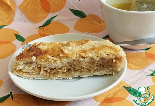 Сверху начинку из яблок и засыпать равномерно оставшейся