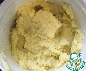 В картофельное пюре добавить яйца и соль, если нужно. Сюда же добавить муку. Перемешать.