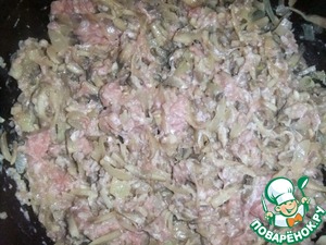 Сделать начинку. Для этого сначала на растительном масле обжарить лук, затем добавить шампиньоны,