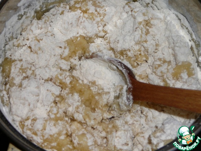 Я делаю это еще на газу. Как только масса станет однородная без кусочком и комочков муки, снимаю с плиты.