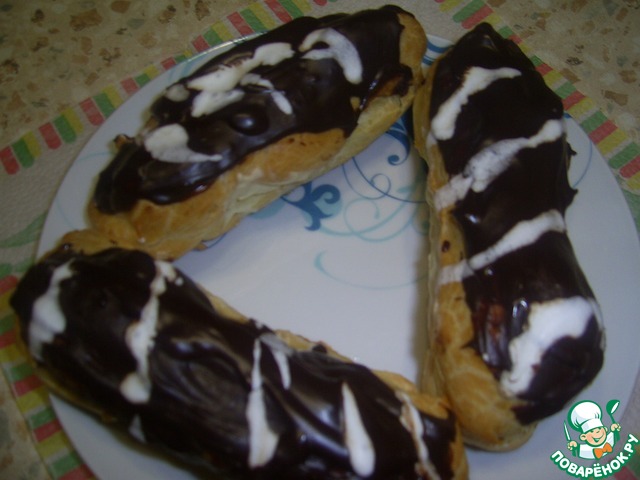 Когда крем начал густеть, я наполнила пирожные и частично украсила глазурью.