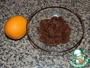 В начинку добавить ложку масла, цедру и сок половинки апельсина. Тщательно перемешать до получения пластичной пасты (возможно, потребуется еще немного сока).