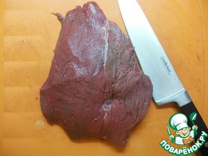 Мясо нужно превратить в тонкий пласт. Разрезаем пополам, до конца не дорезаем 1 см. Разворачиваем как книжку.