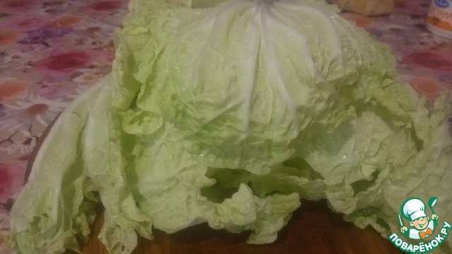Собираем наш салатик. Пекинскую капусту порвать руками и выложить на блюдо, немного полить заправкой, выложить курицу, полить заправкой обильно, сверху снова выложить капусту, посыпать крутонами, сверху посыпать сыром натертым на мелкой терке. Также можно добавить томаты порезанные кубиками, но в этот раз я делала без них.
