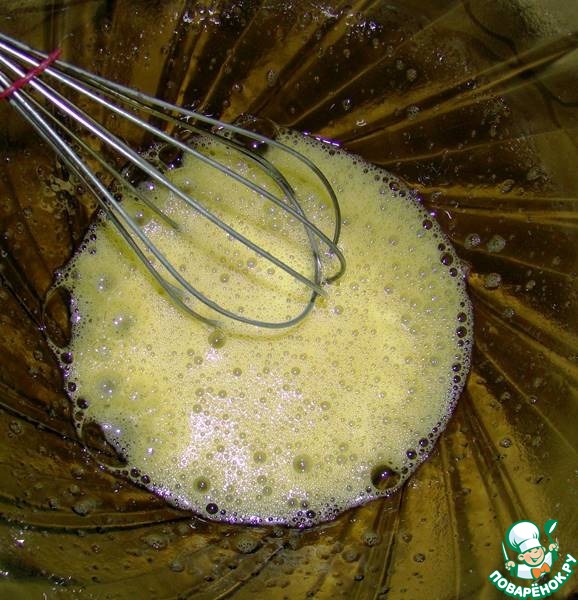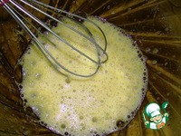 Яйца с желтком, тростниковый сахар и щепотку соли взбиваем венчиком до однородного состояния. Сильно усердствовать не нужно - пышная пена в данном случае нам не нужна! |