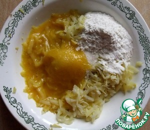 Ввести в него яйца и 100 г муки. Остальную оставить на подпыл.