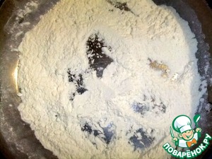 На сухой сковороде обжарить муку, пока она не изменит цвет.