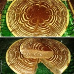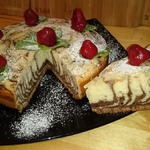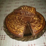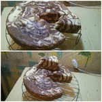Шпажкой сделать разводы. Разделить как бы круг на 6 частей. Получается рисунок как паутинка. Поставить выпекать пирог. Готовому пирогу дать остыть и разрезать на порционные кусочки.