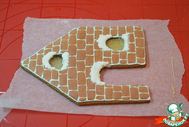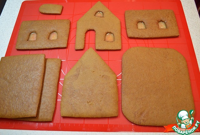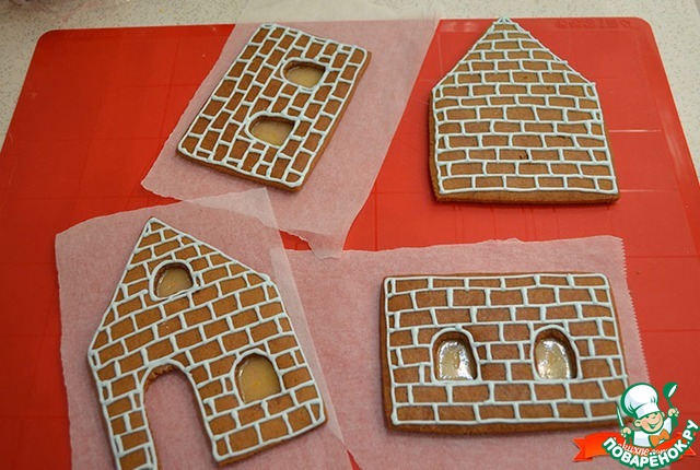 Снять детали с противня вместе с пергаментом, дать полежать 10 минут, убрать с пергамента. Даем деталям полежать 8 часов, лучше выпекать вечером, чтоб пряник немного подсох.