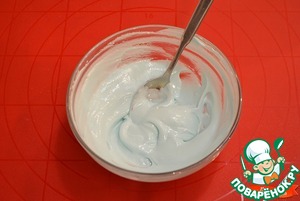 Готовим глазурь, отложить немного глазури и покрасить в голубой или серый цвет. Это будет рисунок цемента между кирпичами.