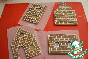Рисуем коричневой глазурью двери. Деталям нужно высохнуть, лучше всего это делать вечером, чтобы оставить высохнуть на ночь.
