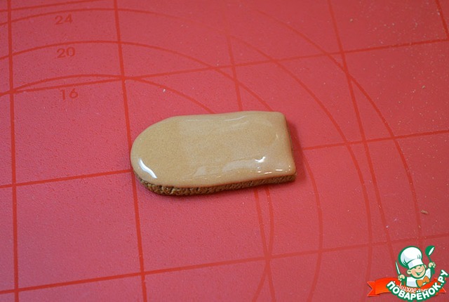 Коричневой глазурью заполняем кирпичики, распределяем глазурь зубочисткой.