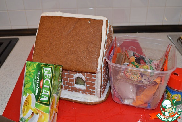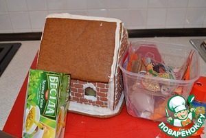 - Глазурь ( рецепт вы сможете найти на моей страничке, для оформления домика вам потребуется еще около двух порций глазури) — 250 г
