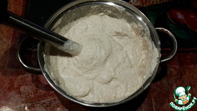 4)Добавляем творог и йогурт. С помощью блендера превращаем всё в однородную массу.