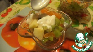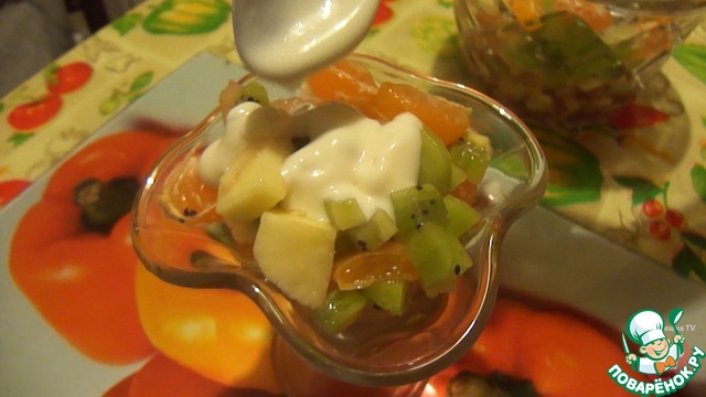 Красочный фруктовый десерт поможет поднять Вам настроение. А на новогодние праздники не даст Вам потерять бодрость, легкость и будет держать в тонусе. Также и дети не останутся равнодушными к фруктовому десерту.