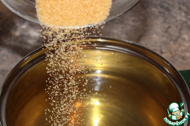 Воду нагреть на плите. Пока вода греется, приготовим тростниковый сахар "Демерара" от Мистраль 4 ст. л. Я не сладкоежка, поэтому мне показалось немножко сладковато, но не приторно. Я бы еще уменьшила количество сахара до 3 ст. л. Хотя по рецепту надо было бы еще больше.