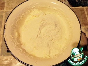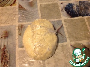 • Положить муку и замесить тесто. Тесто желательно долго не месить иначе получится твердое
