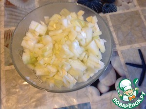 • Лук порезать, положить сахар, 1ч. ложку соль и перец, добавить масло и поставить тушить на медленном огне 40 минут