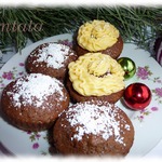 Чудные шоколадные мини-кексы с орешками, пропитанные мандариновым соком с запахом Нового года я хочу подарить моему Морозику - Танюше (sladkay83) из солнечного Краснодарского края!